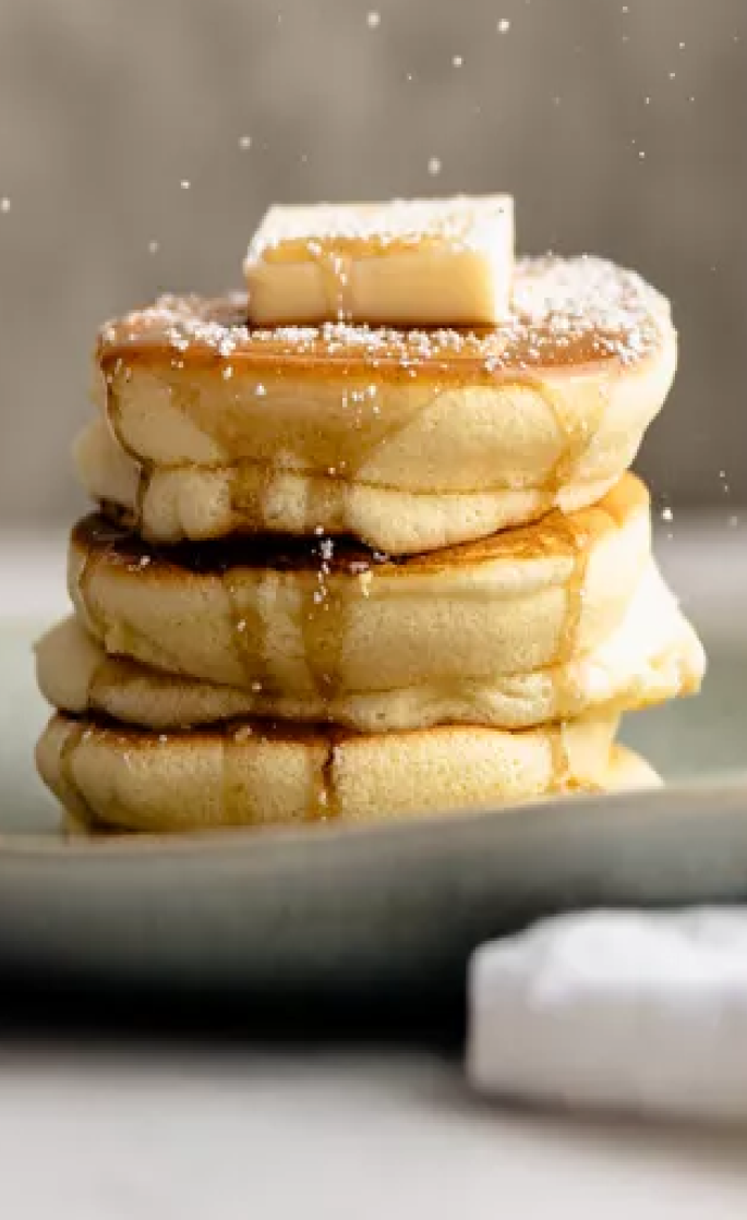 Japanese soufflé pancakes are a hybrid of airy soufflés and flat, sweet American-style pancakes—they call for the same ingredients, like flour, eggs, sugar, milk, and baking powder, just much less of it.. Copious amounts of billowy meringue, whipped egg whites stabilized with sugar and cream of tartar, are folded into the pancake batter, making them incredibly fluffy.